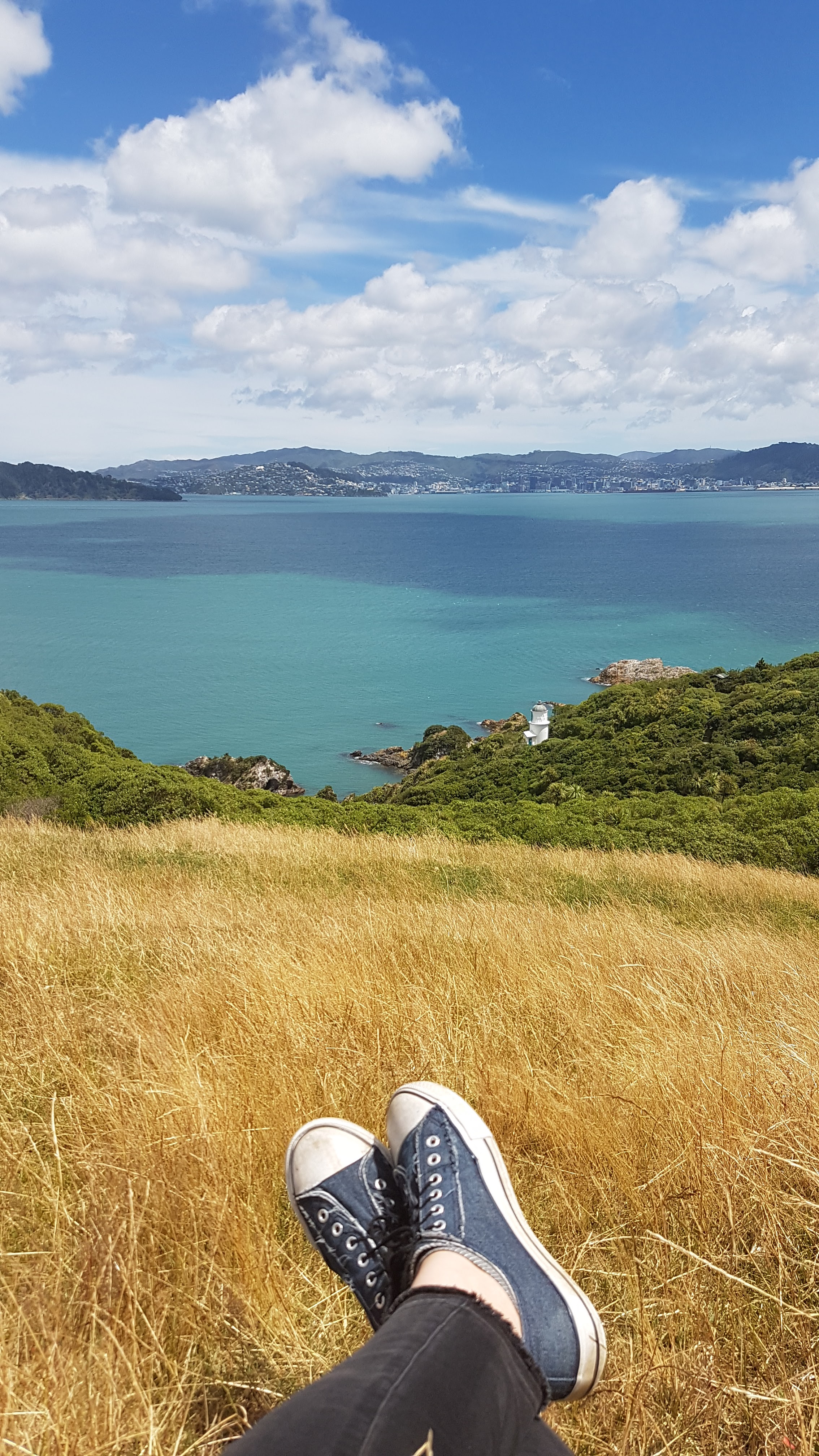 After I manage to tear myself away from watching the Tuatara (doing absolutely nothing but it was still mesmerising), I find myself a quiet picnic bench overlooking the lighthouse with views out to Wellington City. Its a different perspective seeing Wellington from here. It’s a pretty city, compact and framed against blue water and green hills.