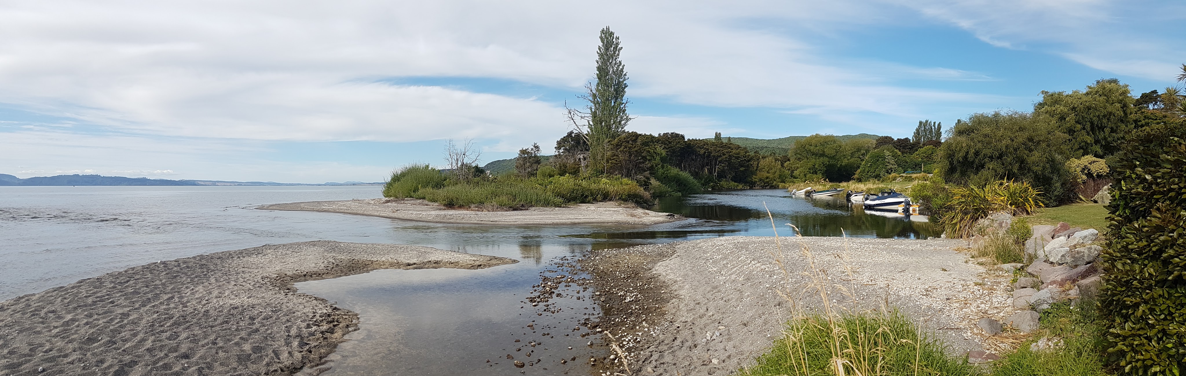 It’s a hot day, so on the way home we call into the picturesque little bay, Hatepe, for a swim. Dad used to come here for summer holidays when he was a kid and is enjoying reminiscing. It’s nice to make new memories, but also to go back and visit places where special memories were made, no matter how long ago. It’s quite a stony beach, I struggle getting in, its not very nice under my feet and its a very shallow bay. I have to walk for ages to get even waist deep. But it is so refreshing and the dip in the cool lake water is worth the effort getting in. Before we head back home, we sit on the shore, enjoying the stillness, the quiet and the beauty around us.