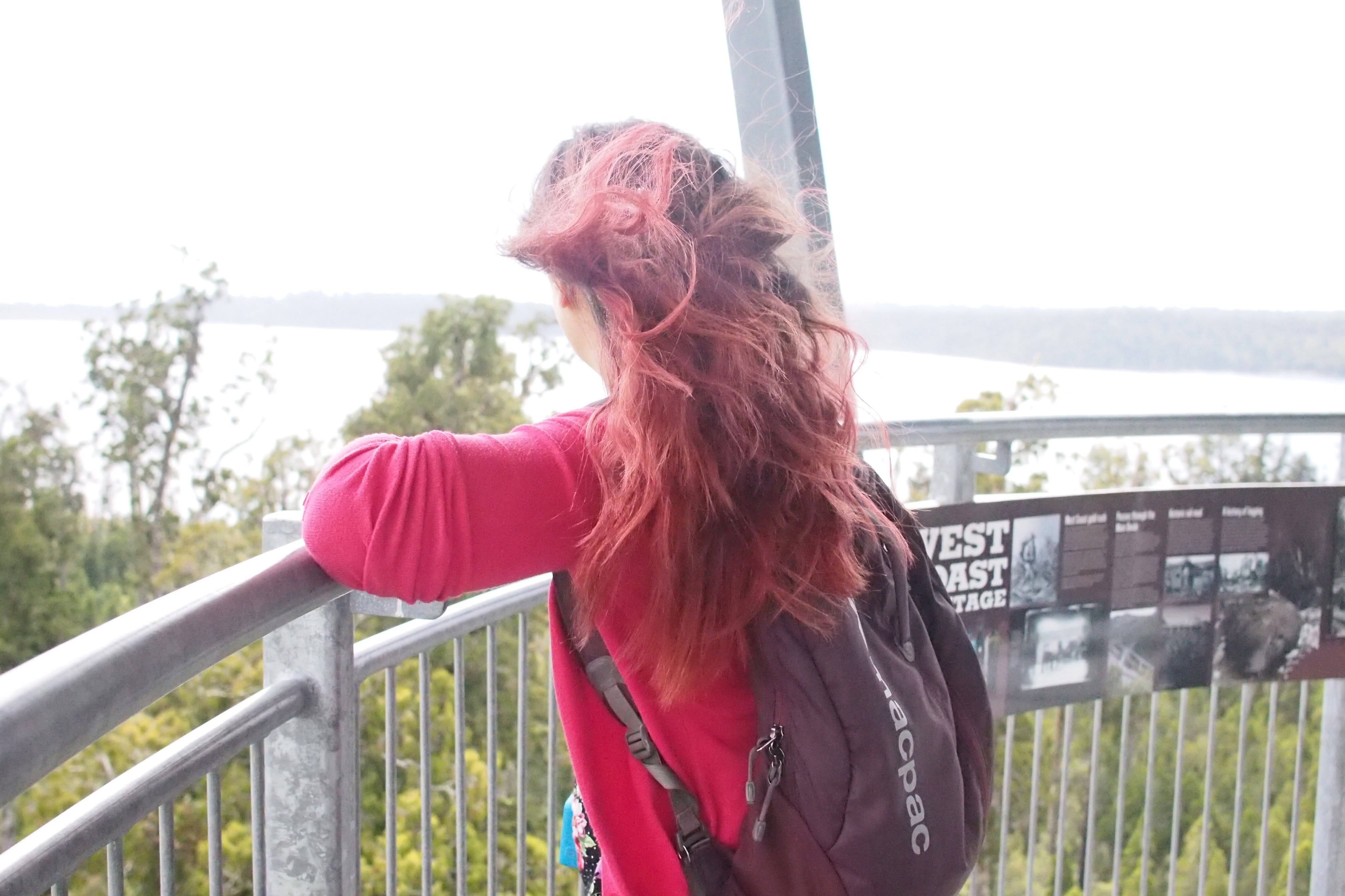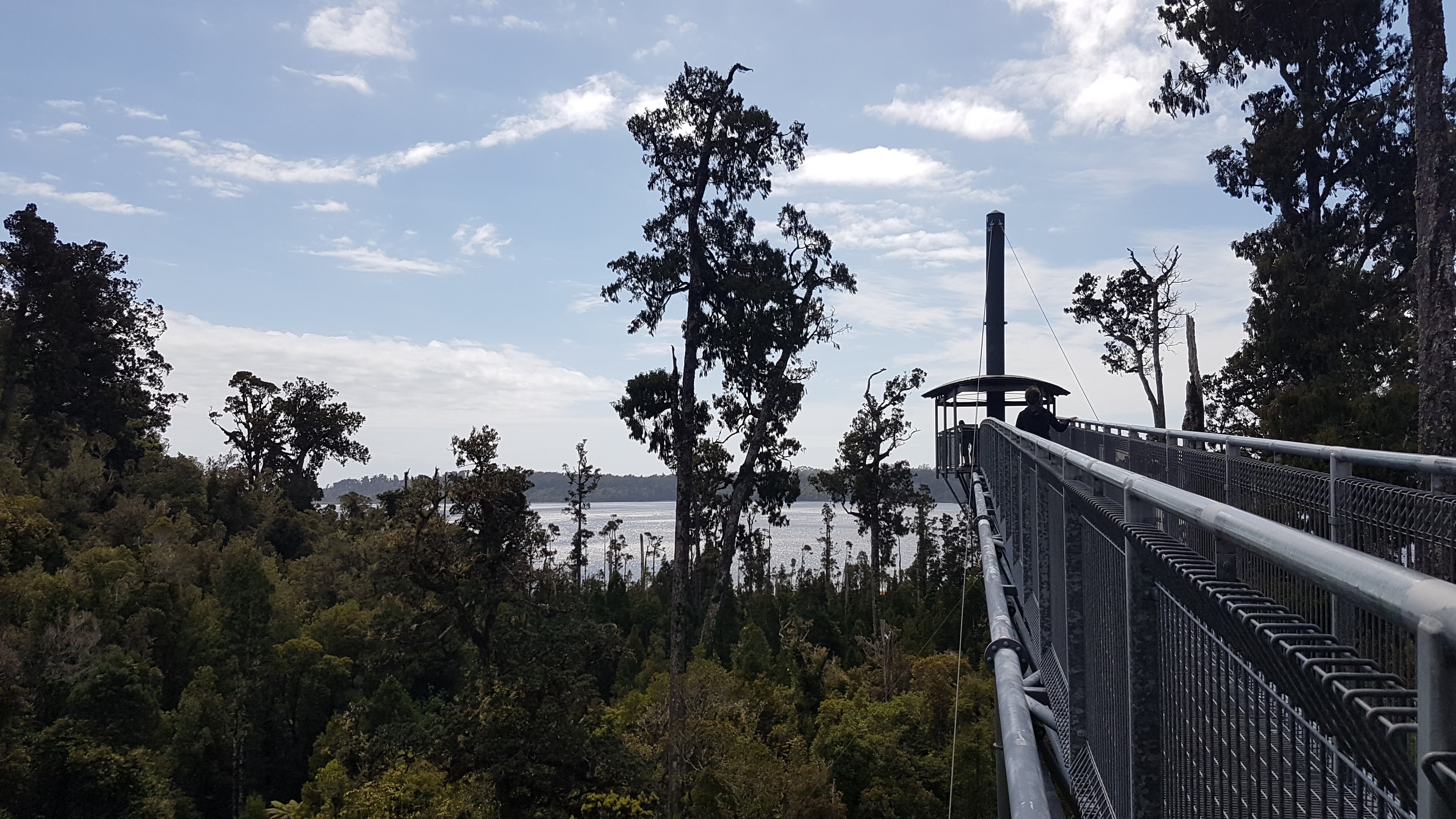 I reach the end of the platform and look out across the forest with it’s yellowy-green foliage, out to Lake Mahinapua.