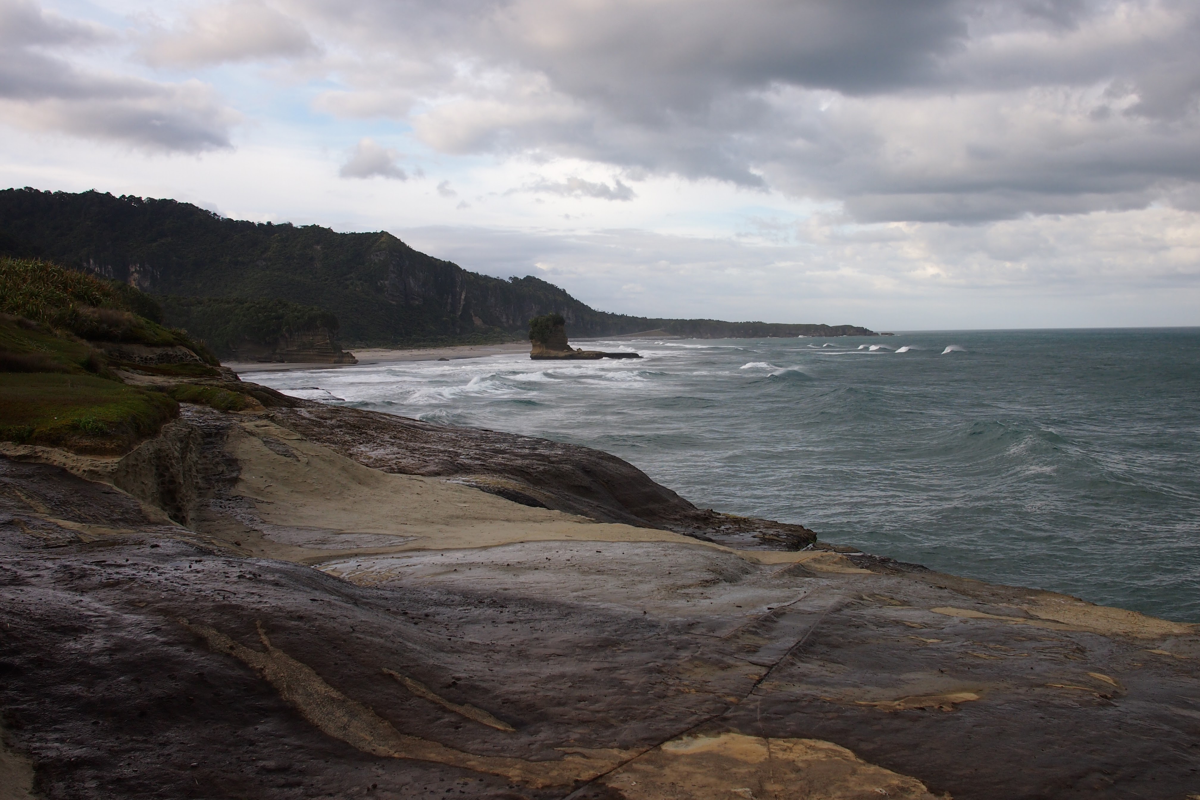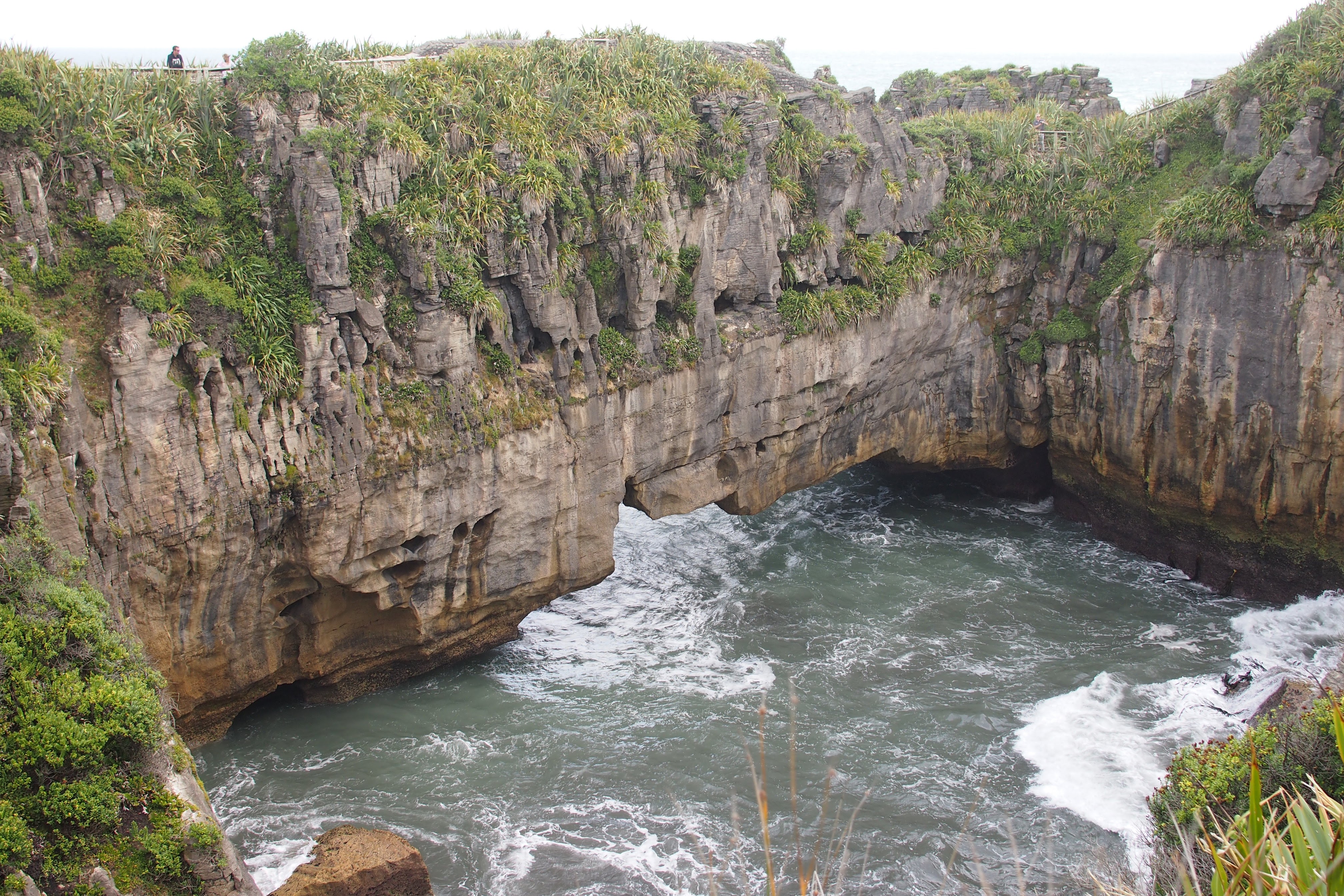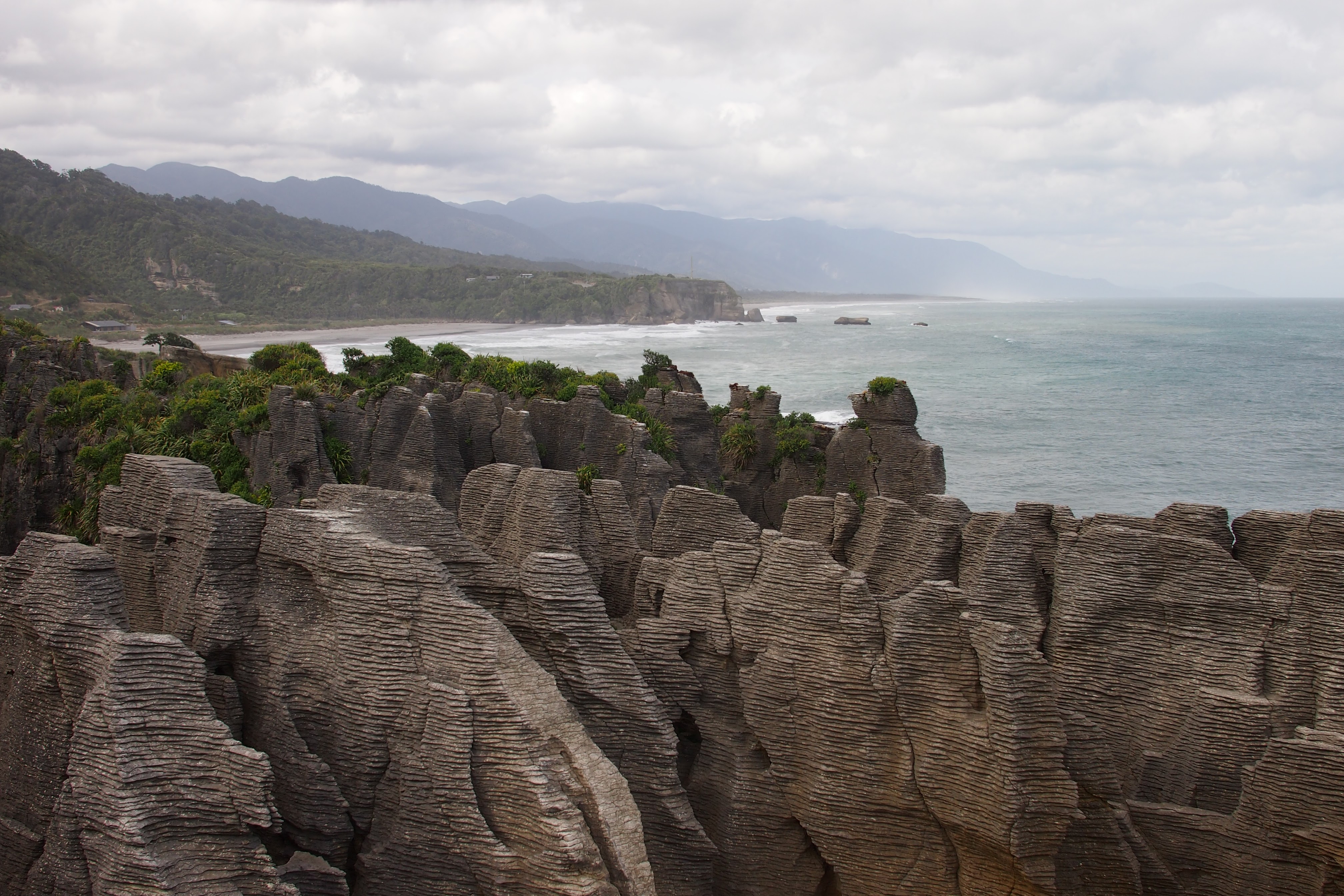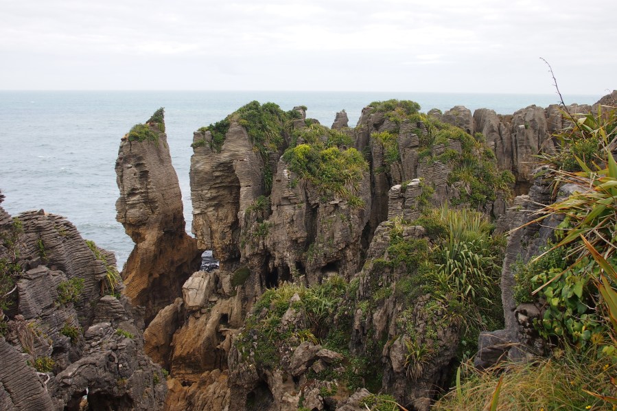A short distance down the road from where we have been staying are the famous Pancake Rocks and Blowholes. This is part of Paparoa National Park and the start of the walk is right in the heart of Punakaiki. Here you can follow a well maintained track that leads you around massive limestone rocks. Their very distinctive layers giving them their ‘Pancake Rocks’ name.