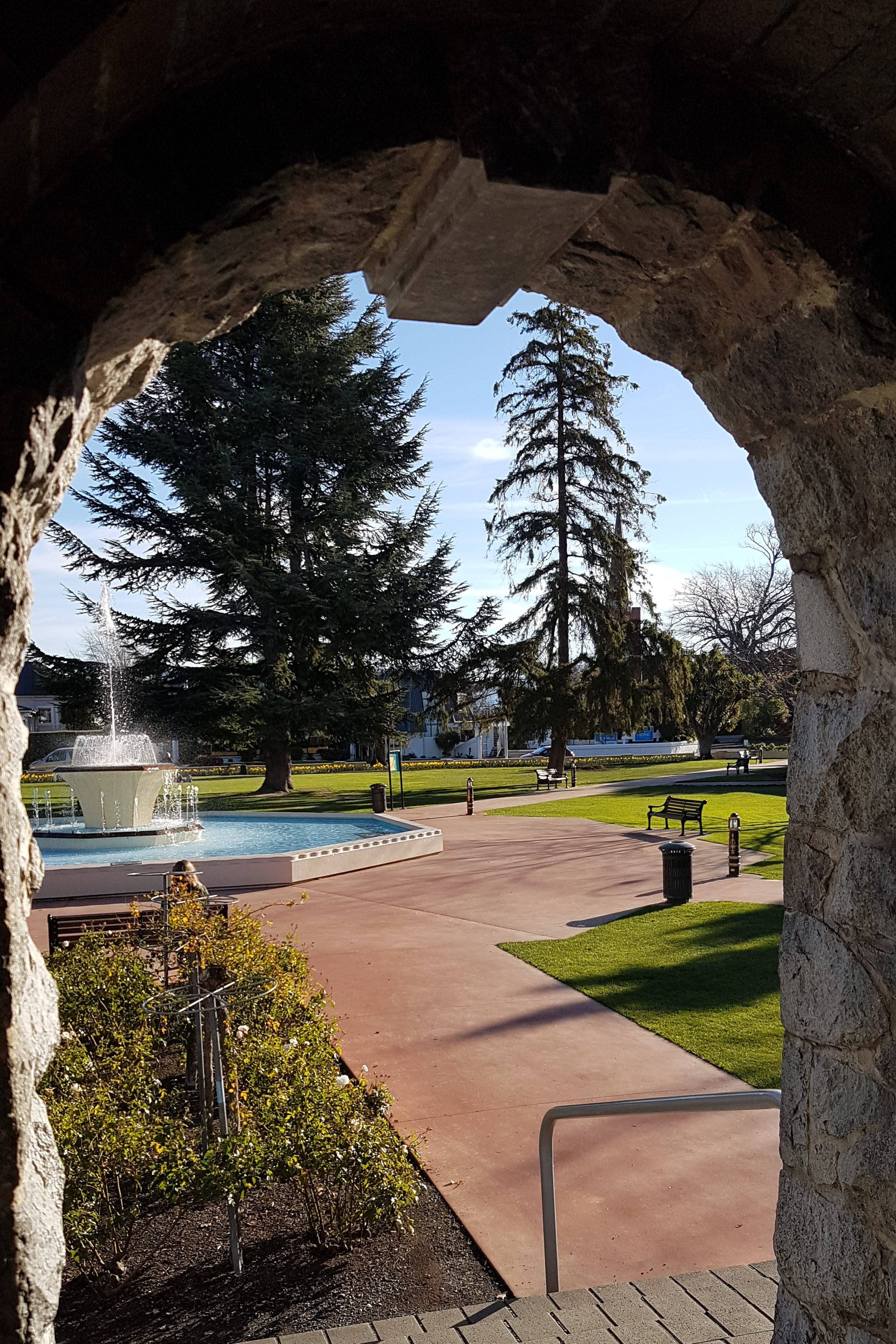 Our walk takes us to Seymour Square. The bell tower is ringing and the water fountain is perfectly symmetrical in the center of the park. Dotted along the back fence is a sea of yellow. It may be winter, but in Blenheim, the daffodils are already out, soaking up the sunshine. Spring is on it’s way.