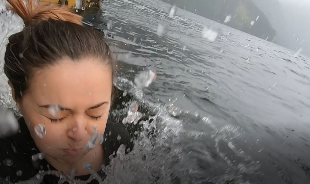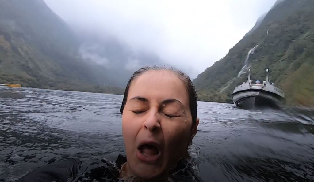 I plunge into the water. My first thought is, ‘this isn’t as cold as I was expecting’ and this water is really brown!’ Then I surface and try to take my first breath and that is when the cold hits. Even swimming the couple of meters back to the boat was a real effort. And just because I am a bit of a nutter, I jumped back in a second time, just to make sure I got it on camera! I can now officially say I have swum in Doubtful Sound, I reckon that’s pretty cool!