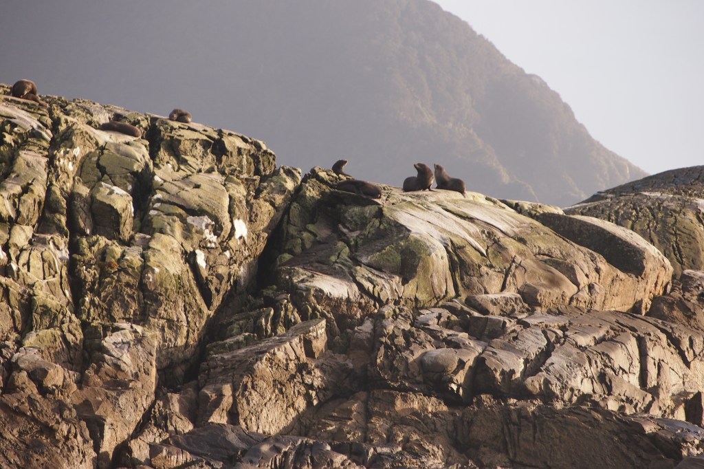 I then head straight to the shower to warm up. For the first few minutes I can’t even tell if the shower water is hot or cold. I am that numb! But the feelings slowly return and after a hot drink in the dining room I am back at human temperature. I wrap up warm and head back outside. The Milford Marina is heading out to the Tasman Sea, I don;t want to miss this. We make a couple of stops along the way to see the seal colony and are lucky enough to spot a Fiordland Crested Penguin.