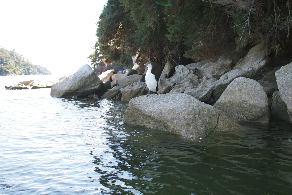 We then head out to Adele Island, named after the wife of French explorer Dumont D’Urville, who mapped the area with incredible accuracy in the early 19th century. Adele Island is home to a colony of New Zealand fur seals (which apparently are actually sea lions) and we were able to watch them on the rocks for a while. At this time of year there were also pups which were very cute. They are too young to know how to swim, but in a month or 2, Red explains that they will be more confident with swimming and are very curious. They will swim right up to you and Red has even had one jump onto his kayak.