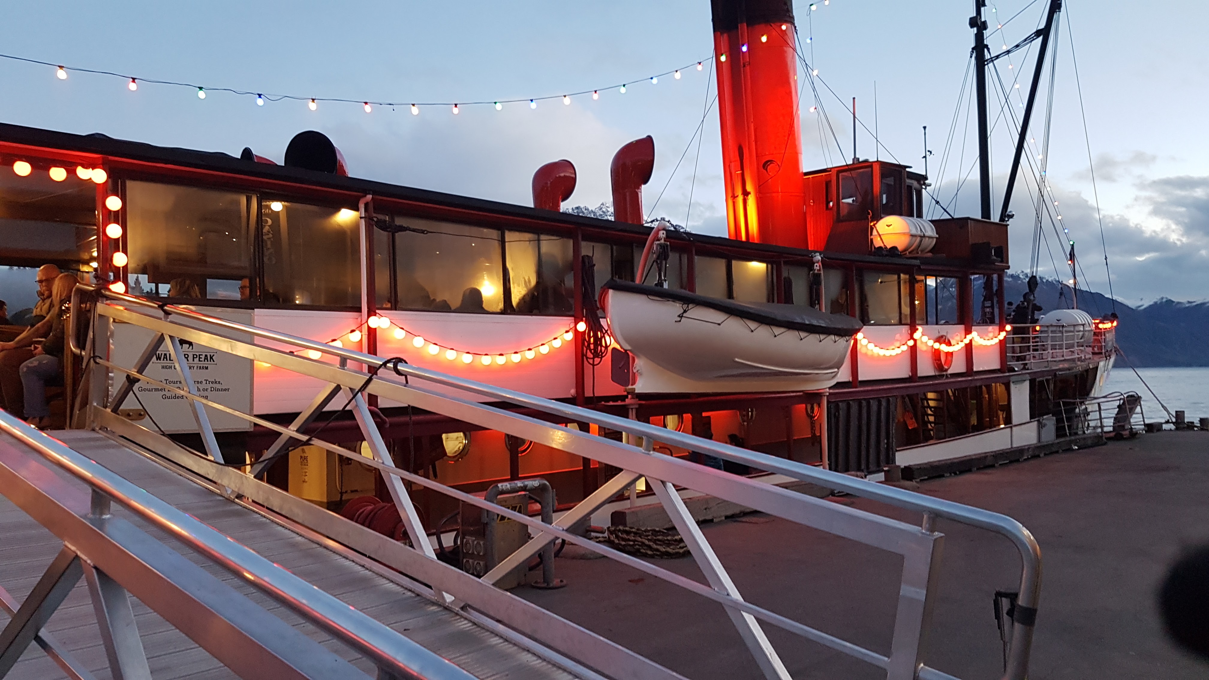 I really enjoyed my trip on the Earnslaw and I would certainly recommend it, but perhaps not the evening cruise. Seeing the light slip away behind the mountains and the lights reflect off the lake is lovely, but there is so much beauty in this area. Most of this cruise was in the dark. I would have been able to enjoy a lot more of the scenery on a day cruise.